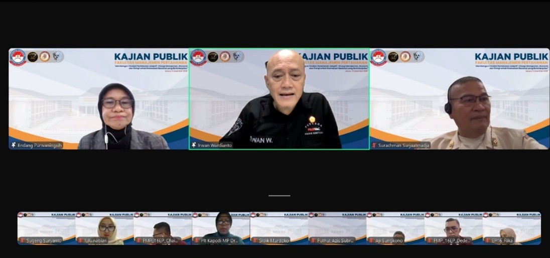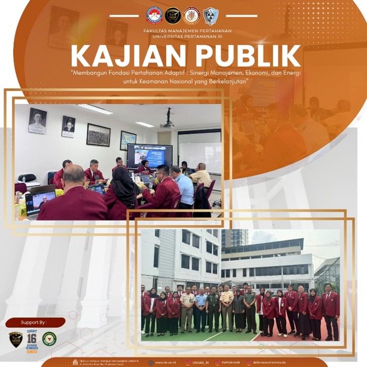 9 Desember 2025 dilaksanakan Kajian Publik FMP Universitas Pertahanan Republik Indonesia (Unhan RI). Kajian ini bertemakan “Membangun Fondasi Pertahanan Adaptif: Sinergi Manajemen, Ekonomi, dan Energi untuk Keamanan Nasional yang Berkelanjutan”. Kegiatan ini menghadirkan para pakar ekonomi, energi dan pertahanan untuk membahas perspektif strategis menuju pertahanan yang adaptif, mandiri, dan berkelanjutan.