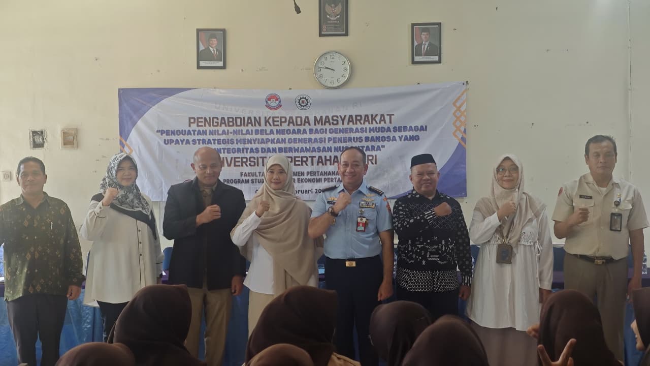 Universitas Pertahanan Republik Indonesia (Unhan RI) melalui Prodi Ekonomi Pertahanan Cohort 16 melaksanakan Pengabdian Kepada Masyarakat (PKM) sebagai bagian dari pelaksanaan Tri Dharma Perguruan Tinggi. Kegiatan ini mengangkat tema “Penguatan Nilai-Nilai Bela Negara bagi Generasi Muda sebagai Upaya Strategis Menyiapkan Generasi Penerus Bangsa yang Berintegritas dan Berwawasan Nusantara” yang dilaksanakan di SMK YPWKS Cilegon. (Kamis, 12/2)